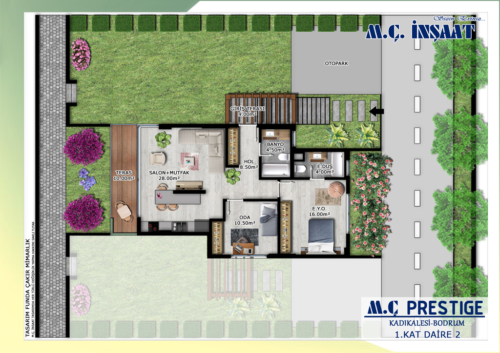 M.Ç. Prestige Kadıkalesi projesi, 20 adet bağımsız bölümden oluşmaktadır. 5.700M2 arazi üzerine yapılan M.Ç. Prestige Kadıkalesi Projesinde güvenlikli giriş, çocuk bahçesi, havuz, açık otopark ve geniş yeşil alan bulunmaktadır.